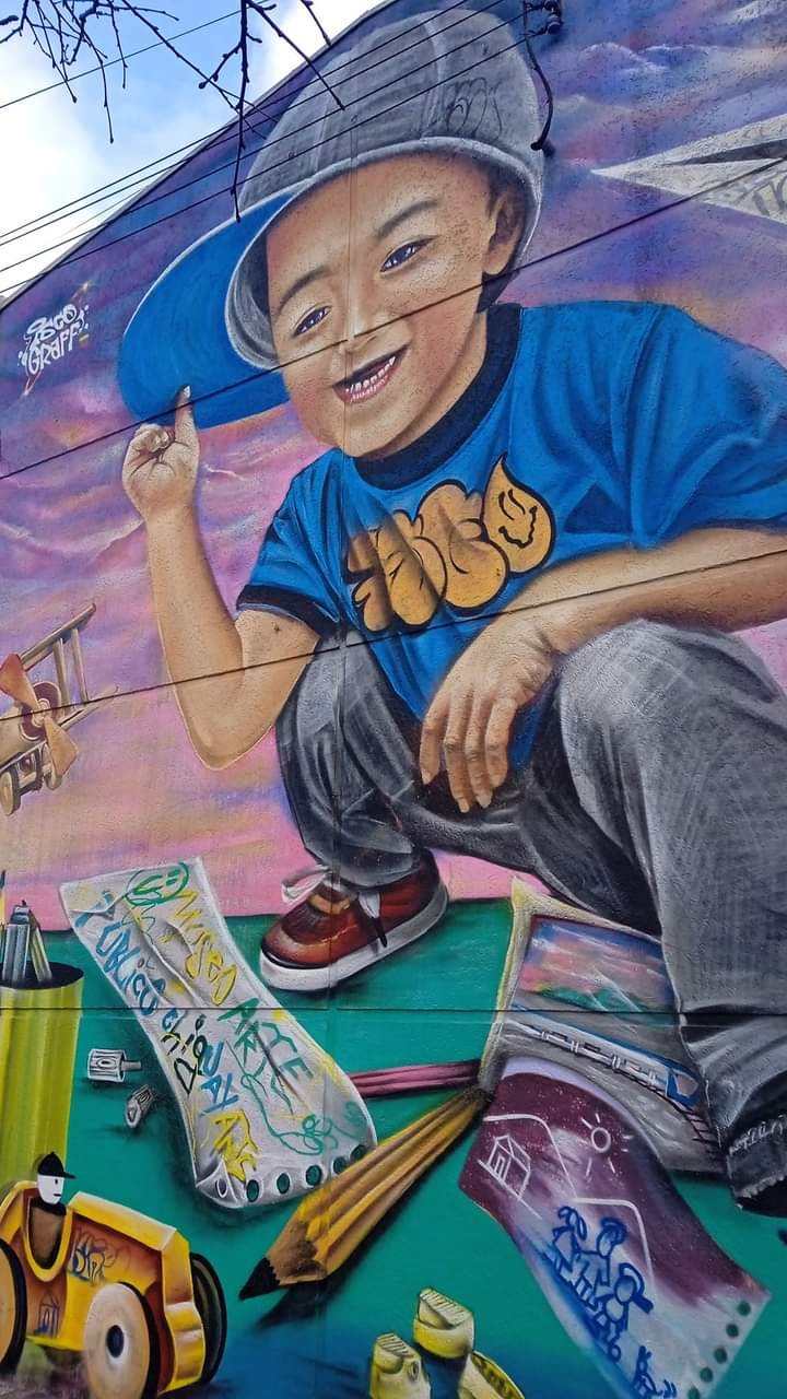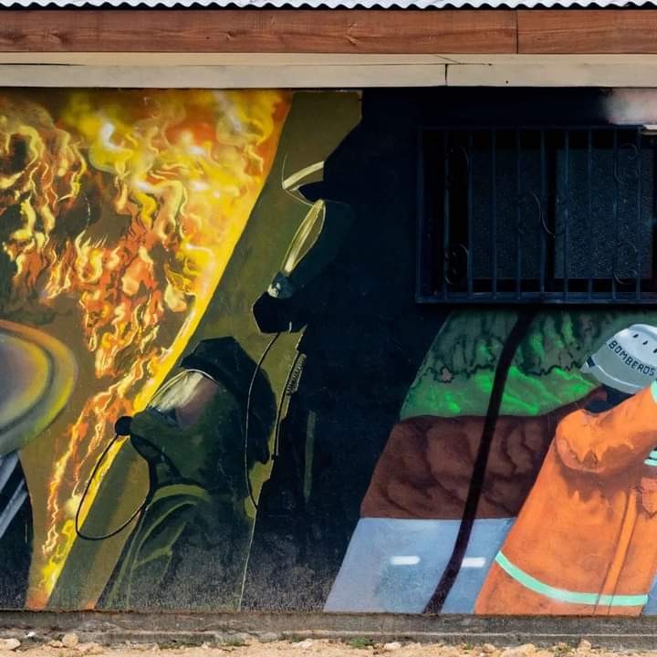 Los grafiteros agregaron que "trabajamos temáticas referente a reconocimiento social (mural bomberos) e infancia, trabajo desarrollado en colegio John Kennedy y escuela González Videla".