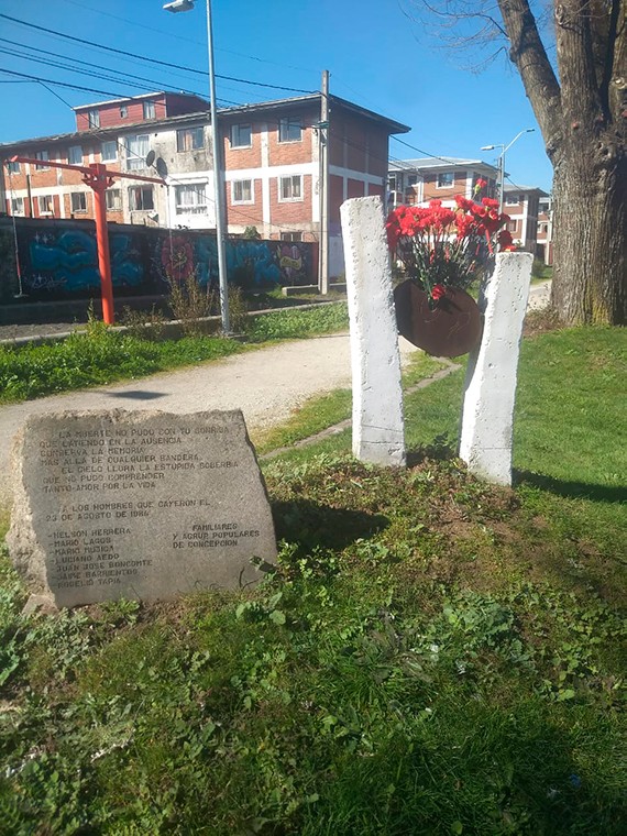 Memorial en calle 21 de Mayo frente a la Vega Monumental en Lorenzo Arenas, Concepción