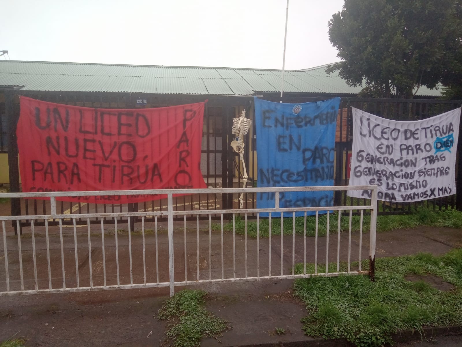 Desde el jueves pasado, el liceo Trapaqueante de Tirúa se encuentra en paro, una decisión que fue apoyada por apoderados y estudiantes, debido a las deficientes condiciones del establecimiento. Denuncian faltas de aulas, problemas en los baños, nula implementación de los gimnasios y fallas con el suministro eléctrico, de internet, entre otros.