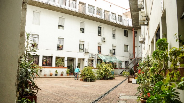 Otra de las exitosas iniciativas emprendidas por FUCVAM ha sido la restauración de espacios patrimoniales degradados y su habilitación como espacios habitacionales. Tal es el caso de la cooperativa Ciudad Vieja (Covicivi), en el casco histórico de Montevideo, otro de los proyectos que tuvimos la oportunidad de visitar. Con 34 viviendas, Covicivi fue uno de los primeros proyectos que articuló el cooperativismo de ayuda mutua con la restauración patrimonial. El «reciclaje» de viejas casonas y edificios para fines habitacionales es también una apuesta política, ya que, al priorizar familias populares y oriundas del territorio, estos proyectos han promovido la identidad y reactivación social de barrios antiguos y marginados de la ciudad. Con ello, se ha limitado en parte la ola gentrificadora que, mediante la explotación inmobiliaria, turística y comercial, busca apropiarse de los espacios históricos que aún sobreviven en la ciudad.