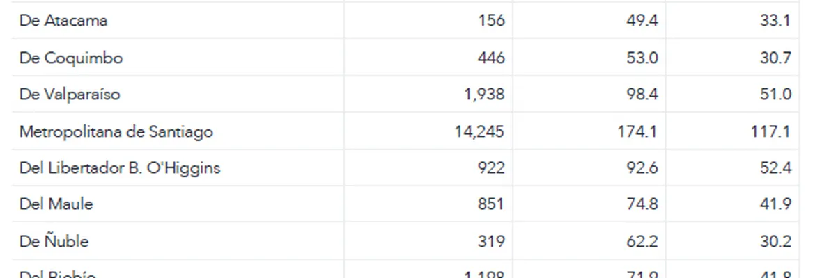 La región Metropolitana continúa liderando las cifras con 6.107 casos activos, seguida de la región de Los Lagos (4.155), de la región del Biobío (3.622), de la región del Maule (2.325), de la región de Valparaíso (2.226), de la región de Antofagasta (1.917), de la región de La Araucanía (1.658), de la región de Tarapacá (1.586) y de la región de Los Ríos (1.371)