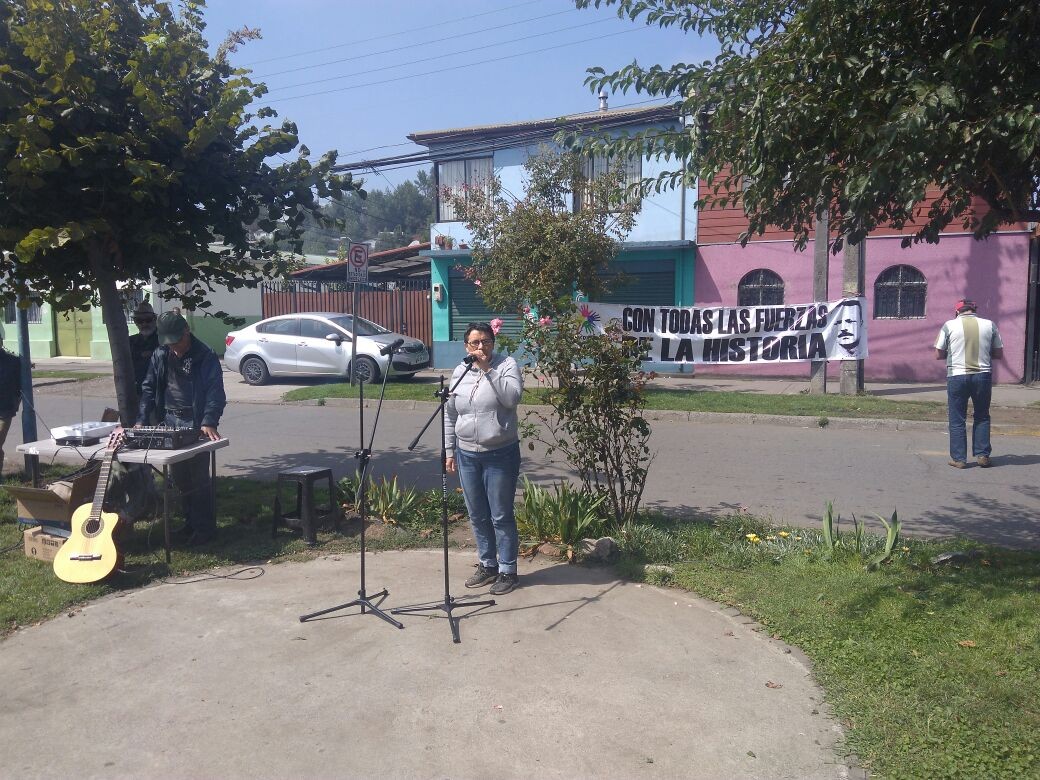 [resumen.cl] El pasado domingo, en la Avenida Central, vecinos, familiares, compañeros y amigos de la Población Pedro Aguirre Cerda, del Sector Villa Mora en Coronel, se reunieron para recordar a los resistentes de dicha población caídos en la lucha antidictatorial. La actividad se realiza en el Memorial de dicha Población, una de las pocas en el país en contar con un hito que recuerde el periodo de las dictaduras militares en el Conosur de Latinoamérica. Esta vez, junto al tradicional acto, se realizó un nuevo mural, al que en los próximos días le seguirá otro.