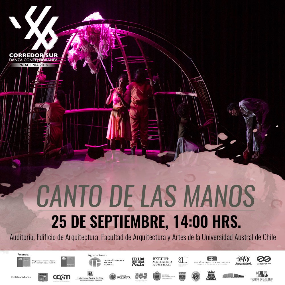 Así, el día 25 de septiembre se presentará la obra “Canto de las Manos” de la compañía Tierra Húmeda de Puerto Montt, a las 14:00 horas en el auditorio de la Facultad de Arquitectura de la Universidad Austral de Chile, campus Isla Teja. El día 27 a las 16:00 se realizará una clase abierta a cargo de Peggy Kuruz, docente y artista con larga trayectoria en la danza y educación, en el Centro Cultural Bailarines de Los Ríos. Esta instancia se concreta a través de la alianza con el programa Pulso Danza 2019 dirigido por el Centro de Experimentación Escénica de Valdivia.