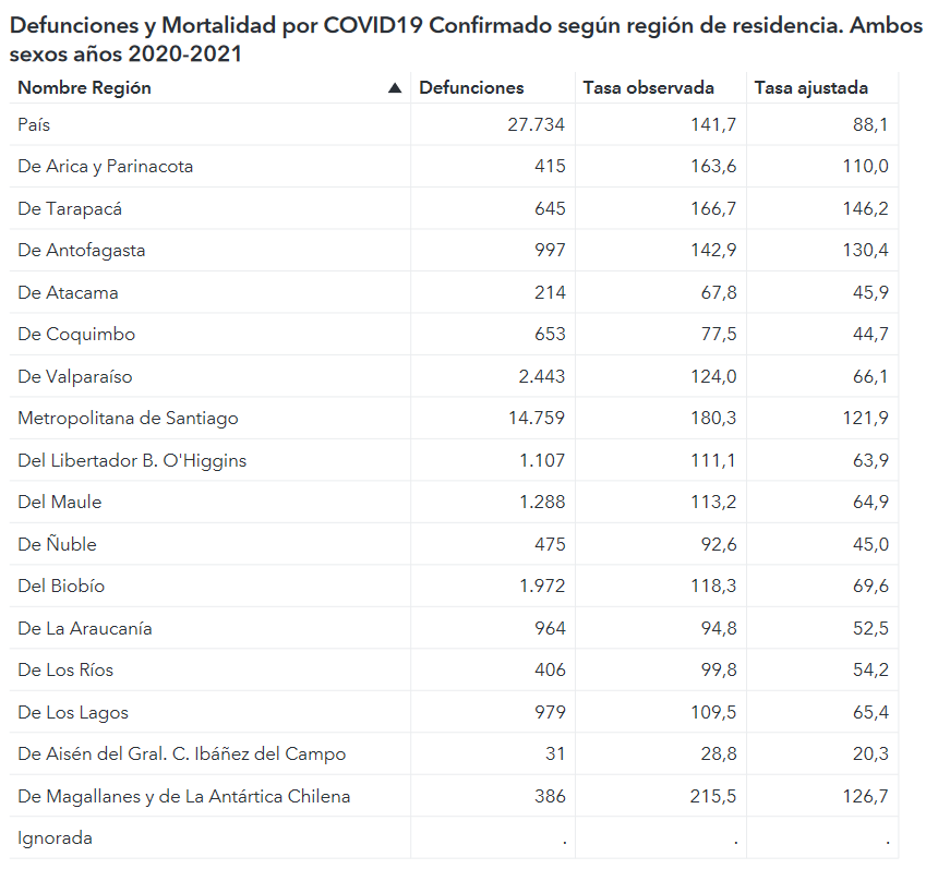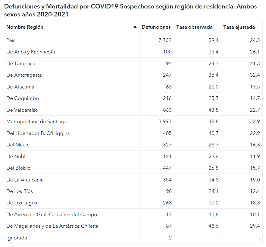 Con respecto a los casos confirmados (16.824 en 2020 y 10.910 en 2021) estos alcanzaron las 27.734 personas. En la región del Biobío el número de defunciones confirmadas fue de 825 en 2020 y 1.147 este 2021 para alcanzar un total de 1.972