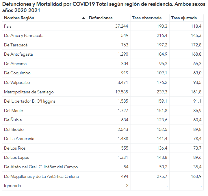 La cifra total de personas fallecidas asociadas a Covid-19 alcanzó las 22.213 en 2020 y 15.031 este 2021, sumando un total de 37.244.