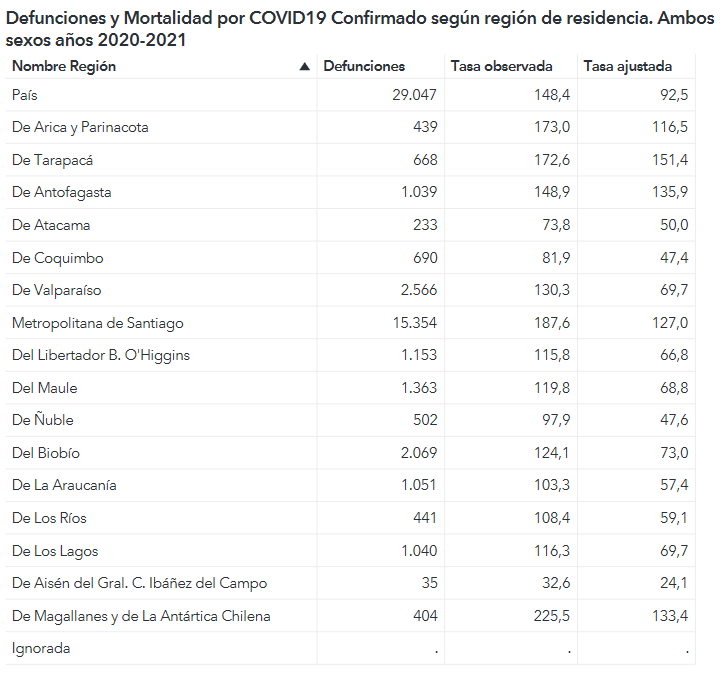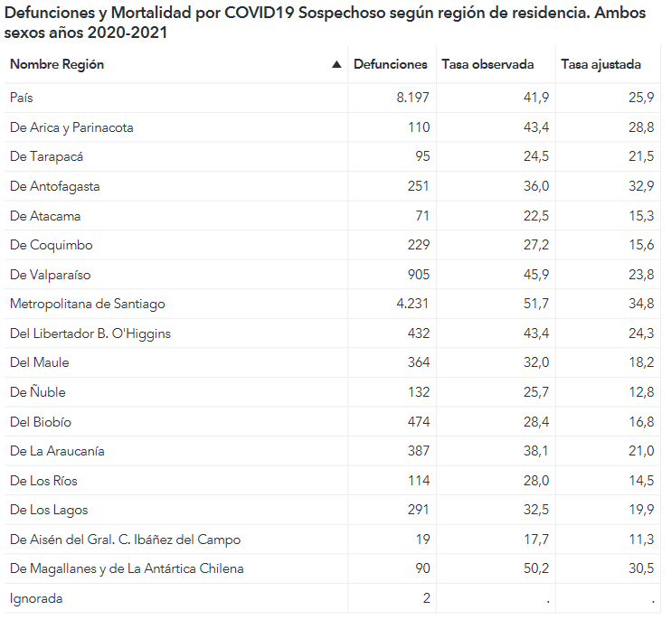 La región del Biobío registró 1.046 muertes totales en 2020 y 1.497 muertes en 2021 alcanzando un total de 2.543