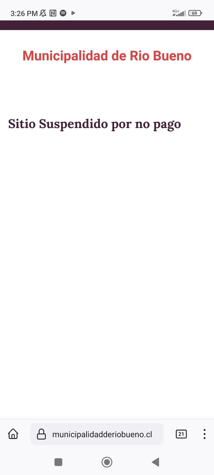 A este caos al interior de la entidad edilicia, se suma la caída de su página web por algunos días. Sitio suspendido por no pago señalaba el portal de la Municipalidad, en una insólita situación.