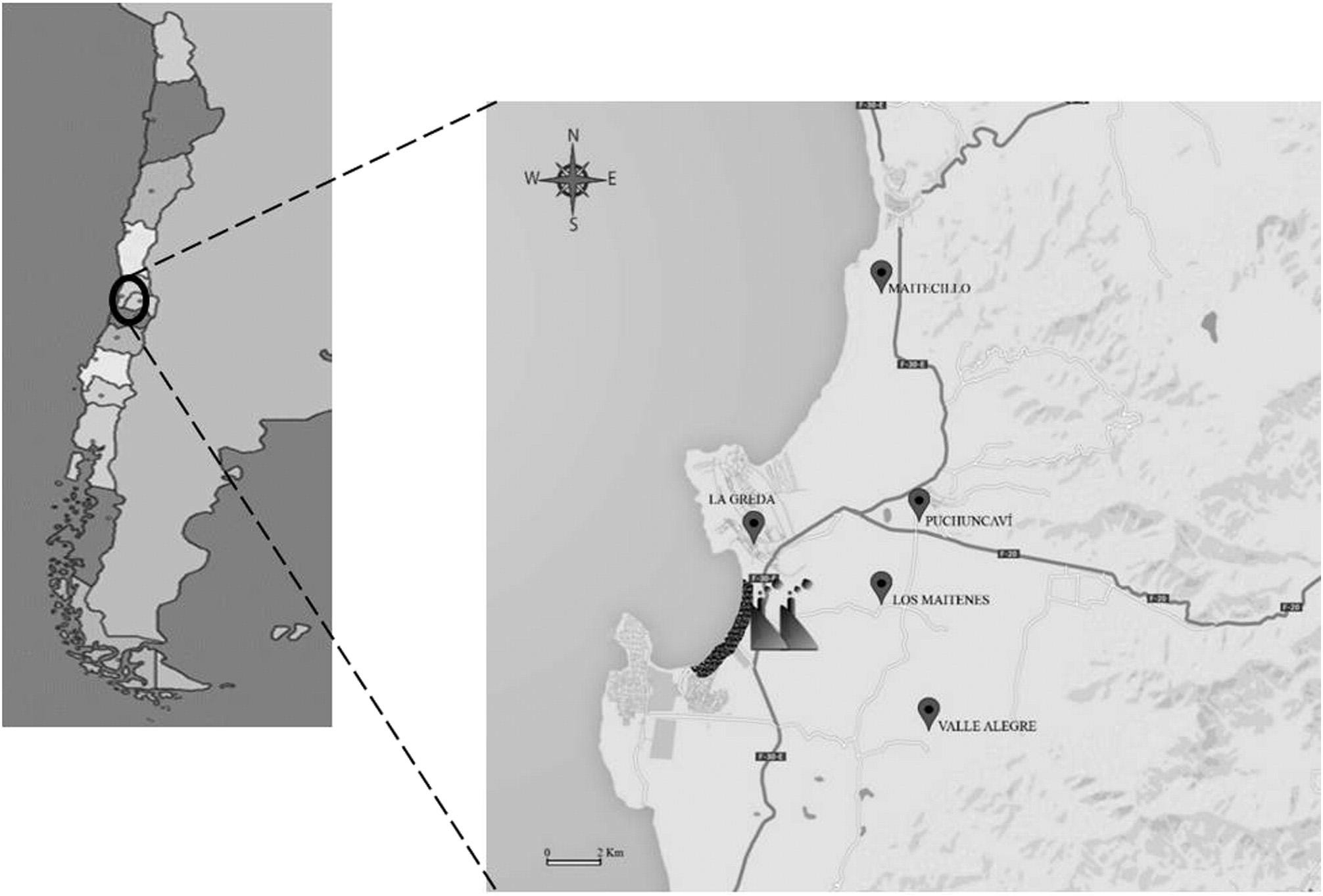 Un estudio publicado en 2015 tomó muestras de suelos de 4 sitios en el valle de Puchuncaví: La Greda, Los Maitenes, Valle Alegre y Puchuncaví (ver Figura 4). Los resultados revelaron mayor contaminación de dos sitios principales cerca de las fuentes industriales (La Greda y Los Maitenes)