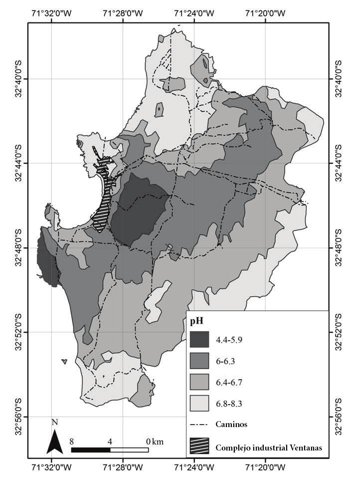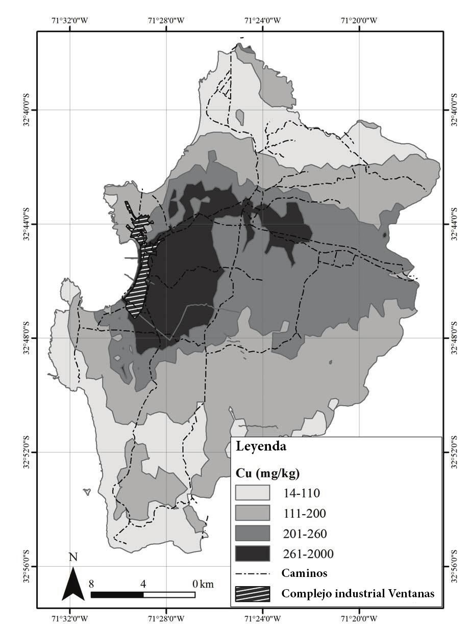 Por otra parte, un estudio de 2014 había determinado la distribución espacial de cobre (Cu) y el pH, o la medida de acidez o alcalinidad en estos suelos, los que han sido expuestos a deposiciones de SO2 y partículas ricas en metales desde el Complejo Industrial Ventanas.