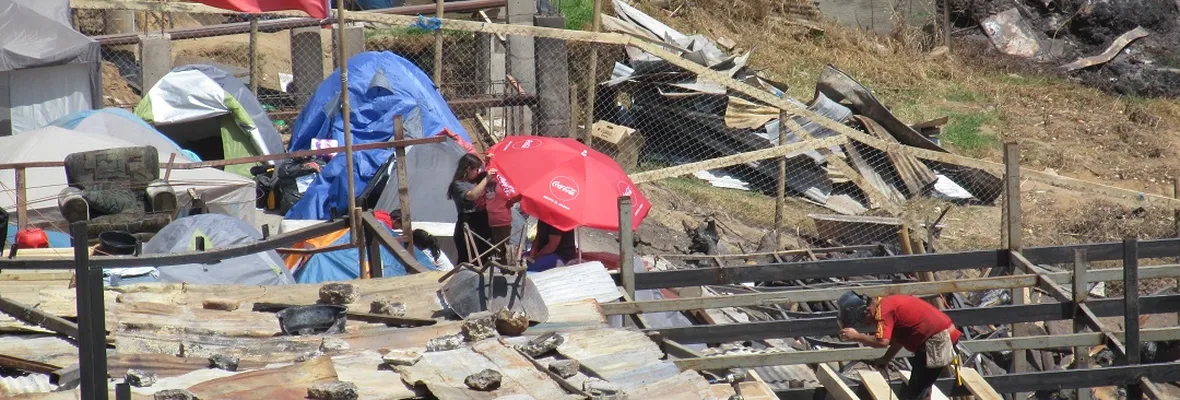 Todo el sector parecía una zona devastada por un bombardeo, con muchas carpas en los distintos sitios junto a restos de muros y metales de lo que hace algunos días atrás eran casas. Quienes estaban trabajando en el sector eran los propios pobladoras y pobladores afectados, pudiendo constatar la ausencia casi total de grupos de voluntarios.