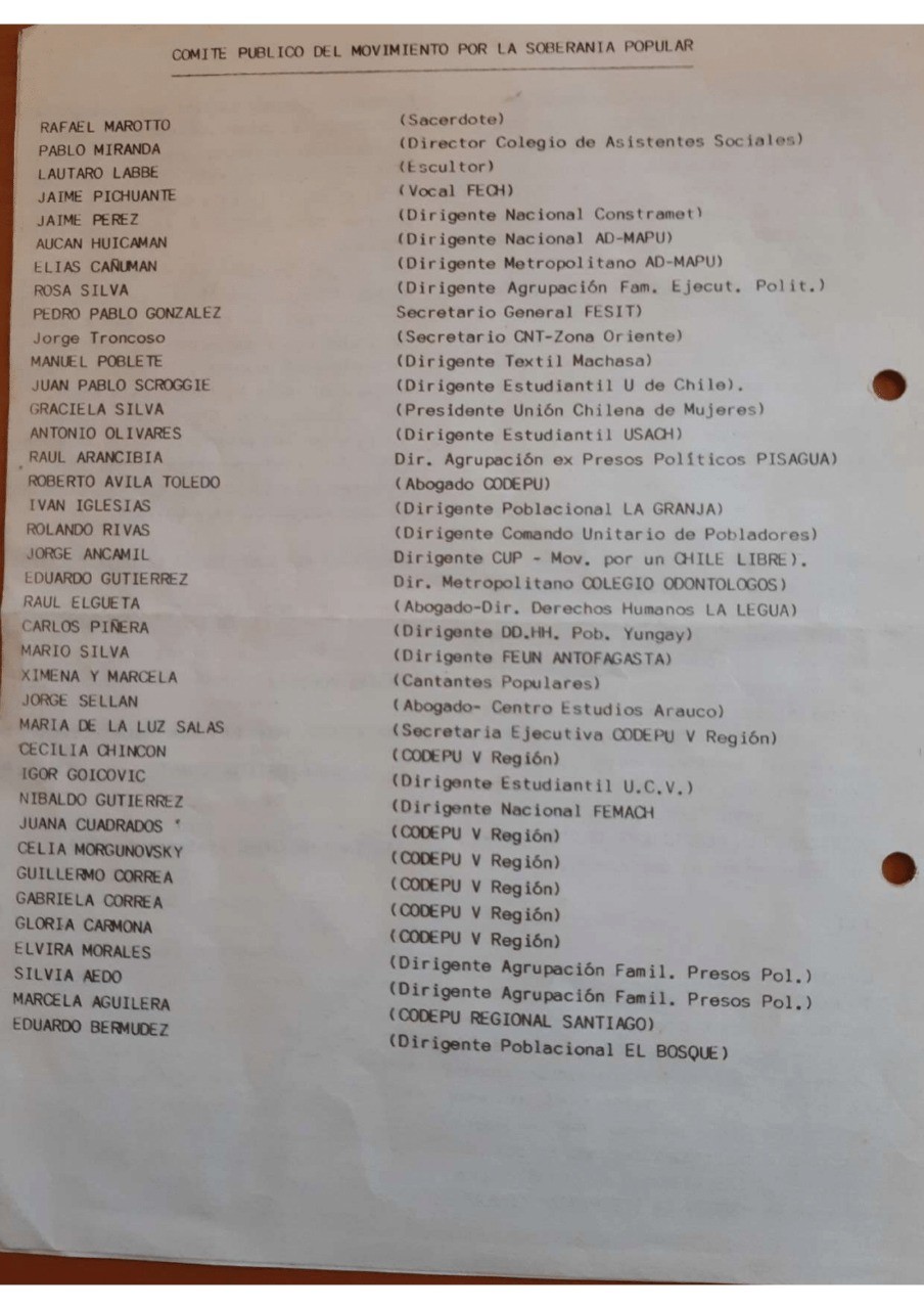 Quilpué 5 de octubre de 2020.[1] Manifiesto por la Soberanía Popular, 1988.