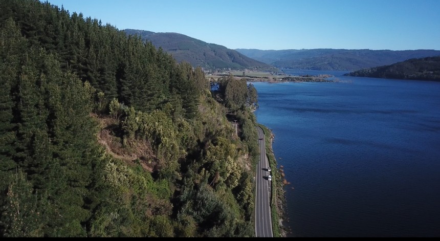 Lago Lanalhue en Contulmo rodeado de plantaciones forestales