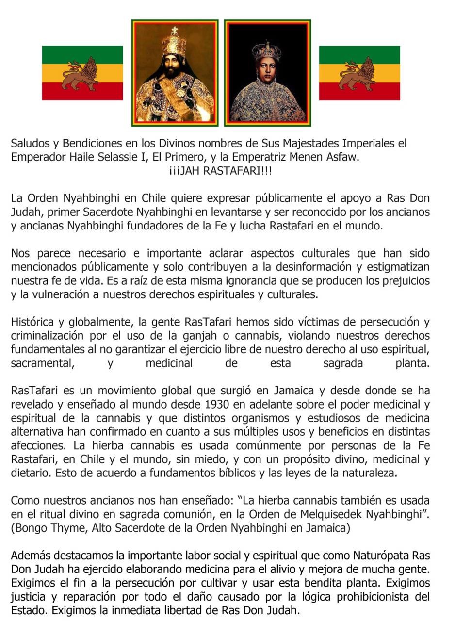 Comunicado comunidad Rastafari en apoyo a Dago Videla