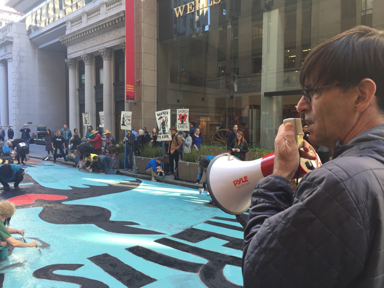 Gary Hughes, parte de Biofuelwatch en una manifestación ambiental en San Francisco