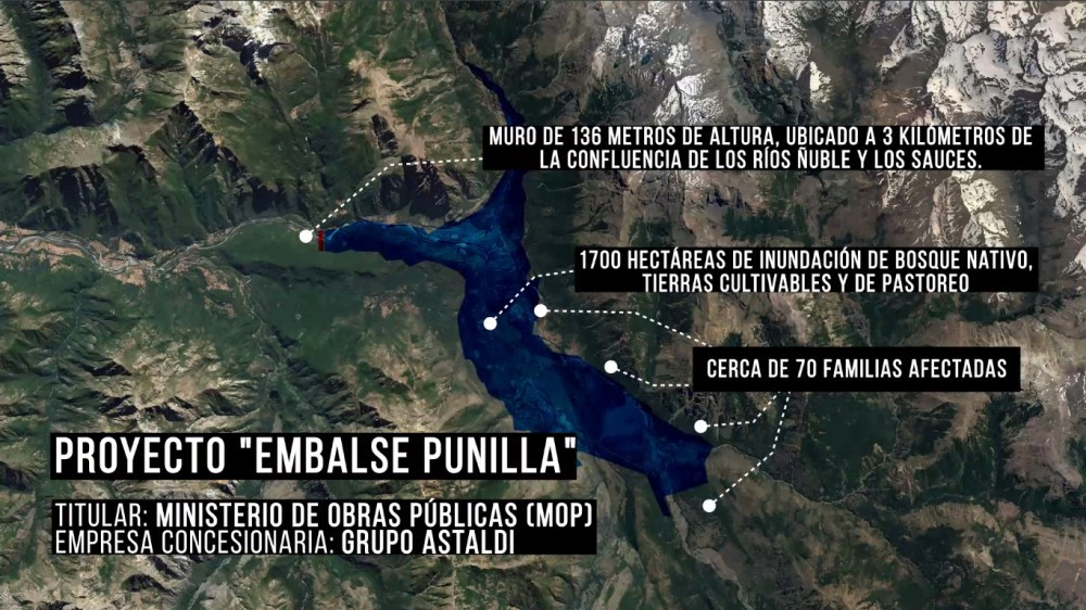 El proyecto Embalse Punilla lleva décadas siendo anunciado para la cuenca del río Ñuble y ha dividido las opiniones entre la población que buscaba la conservación del ecosistema acuático y quienes buscaban el aprovechamiento del agua para hidroelectricidad, riego y agronegocios. El embalse pretende inundar 1.700 hectáreas de tierras junto al río, en medio del Corredor Biológico Nevados de Chillán-Laguna del Laja, calificado como Reserva Mundial de la Biósfera por la UNESCO.