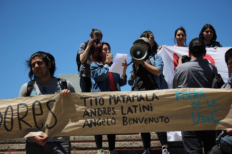 En cuanto a los otros profesores acusados "a Adrián Pineda no se le renovó contrato para el segundo semestre y, en cuanto a Ángelo Benvenuto y Andrés Latini, sus informes ya están en manos del rector, [desde el martes y jueves de esta semana respectivamente], y es éste quien tiene un plazo máximo de 10 días para decidir que sanción les dará a los profesores", informó Patricia Mancilla, vocera de la Coordinadora de Periodismo de la Udec. Luego de la concentración en el Foro, las y los estudiantes se desplazaron a la Rectoría para presionar a la máxima autoridad universitaria.