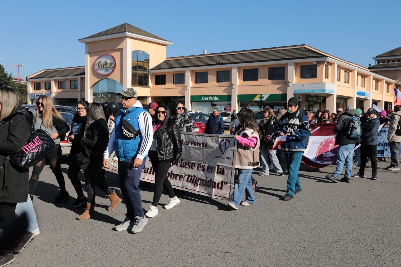 Las y los trabajadores marcharon hasta el centro penquista para solicitar la reacción del Gobierno y el ministerio de Educación ante la debacle económica que les ha generado el no pago de sus cotizaciones por parte del municipio hoy liderado por Patricio Marchant, a quien concejales barajan acusar por abandono de deberes.