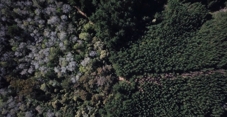 Diferencias entre un bosque (mayor diversidad de especies de árboles) y monocultivo forestal (una sola especie de árboles) en Reserva Nonguén, Gran Concepción, Biobío