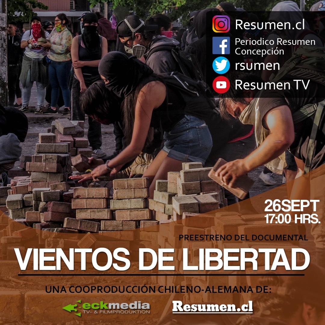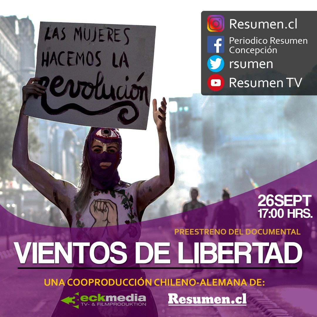 [resumen.cl] El documental titulado "Vientos de Libertad" gira en torno al Estallido Social y tiene como protagonistas a madres, hijas y abuelas chilenas que viven en Alemania por diversas razones, entre ellas, el exilio tras el golpe militar de 1973. De esta manera la producción audiovisual atraviesa hechos políticos, sociales y culturales trascendentales de la historia del Chile contemporáneo, desde la voz de diferentes generaciones de mujeres chilenas en el extranjero.