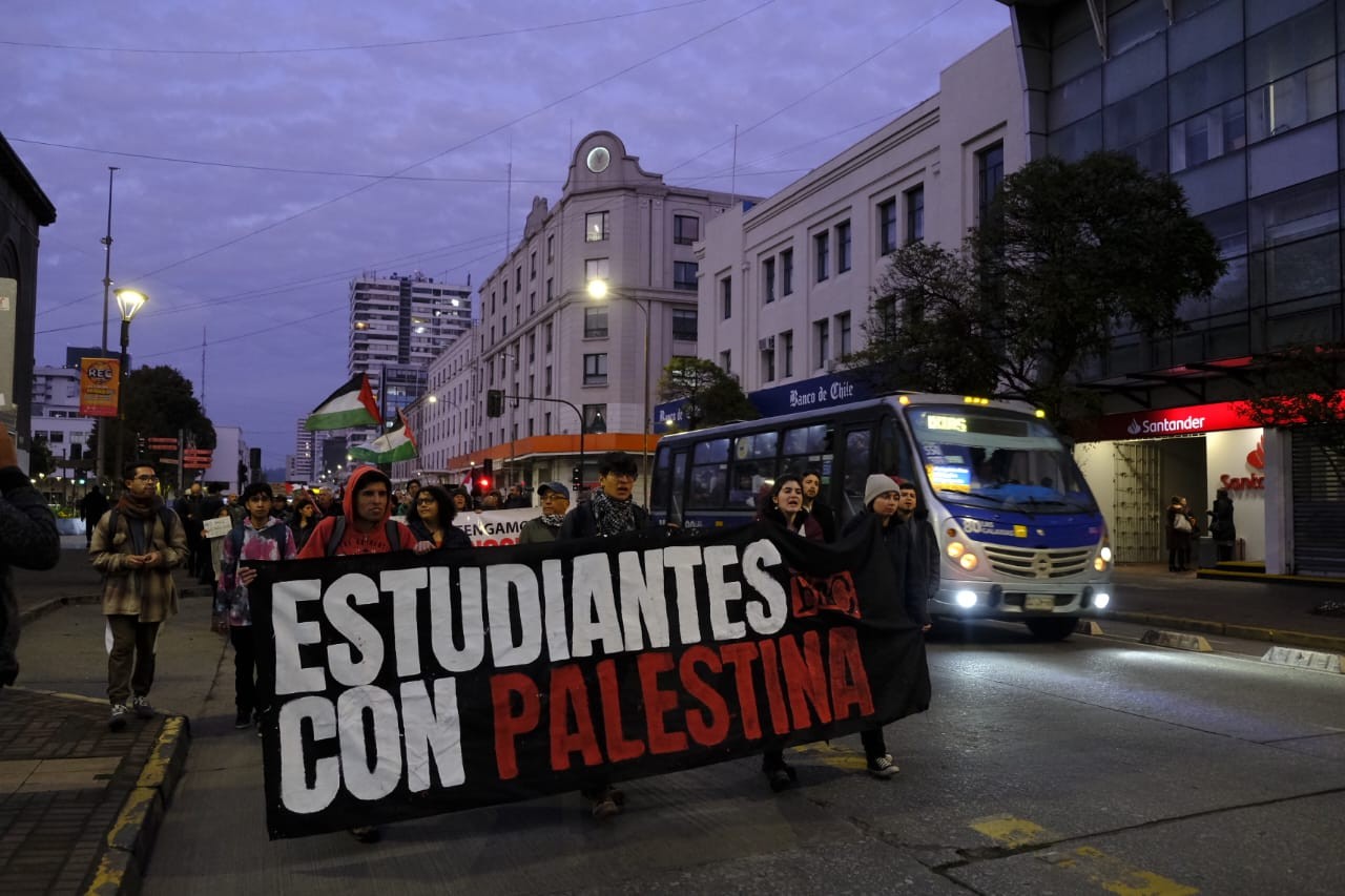 Este jueves se efectuó una nueva marcha en apoyo al pueblo palestino convocada por la histórica Federación de Estudiantes de Concepción (FEC), muy en la línea de la intifada universitaria que se propaga por Estados Unidos y Europa en estos momentos.