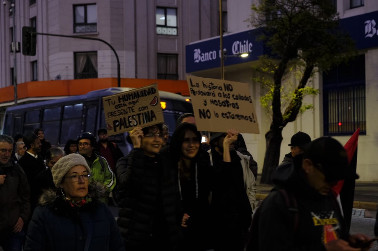 Decenas de personas se dieron cita en los Tribunales de Justicia en calles Tucapel con O´Higgins, en el centro de Concepción, para marchar posteriormente por Avenida O´Higgins hasta calle Lincoyán y volver hacia los tribunales, por Barros Arana. En el recorrido de la marcha, las personas entregaron su apoyo a la causa palestina, sumando a quienes veían desde las veredas, lo que engroso la columna de manifestantes.