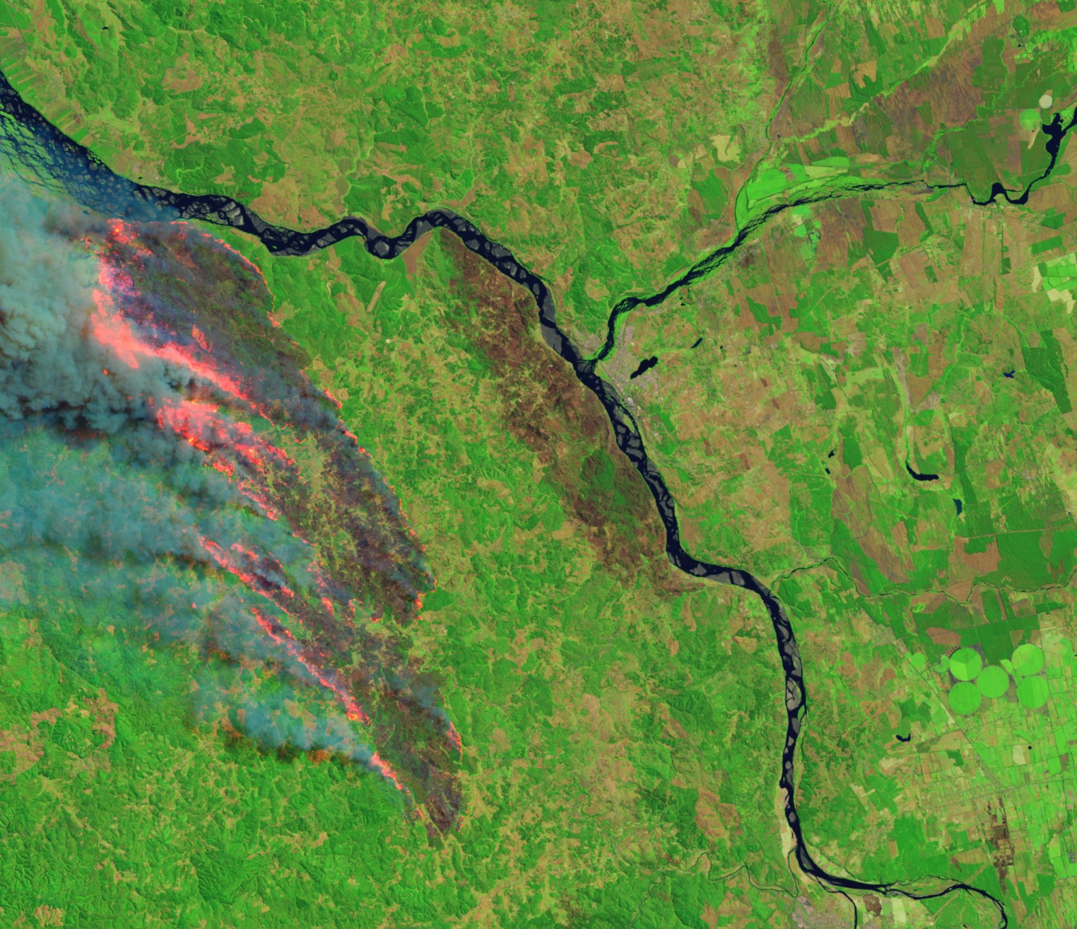 Megaincendio "Santa Ana" entre Nacimiento y Santa Juana. Imagen satelital del 3 de febrero 2023, Landsat 8, NASA.