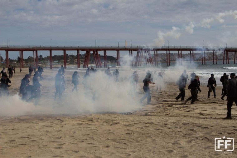 [resumen.cl] Ayer sábado se realizó una nueva marcha en protesta contra la contaminación histórica que han sufrido las comunas de Quintero y Puchuncaví con el funcionamiento del megaparque industrial Ventanas. Manifestantes fueron reprimidos por FF.EE. de Carabineros y por efectivos de la Armada quienes les dispararon balines desde un muelle de Oxiquim. También puedes ver: Pese a la nube tóxica, en Quintero y Puchuncaví aún se respira lucha [Especial Gráfico]