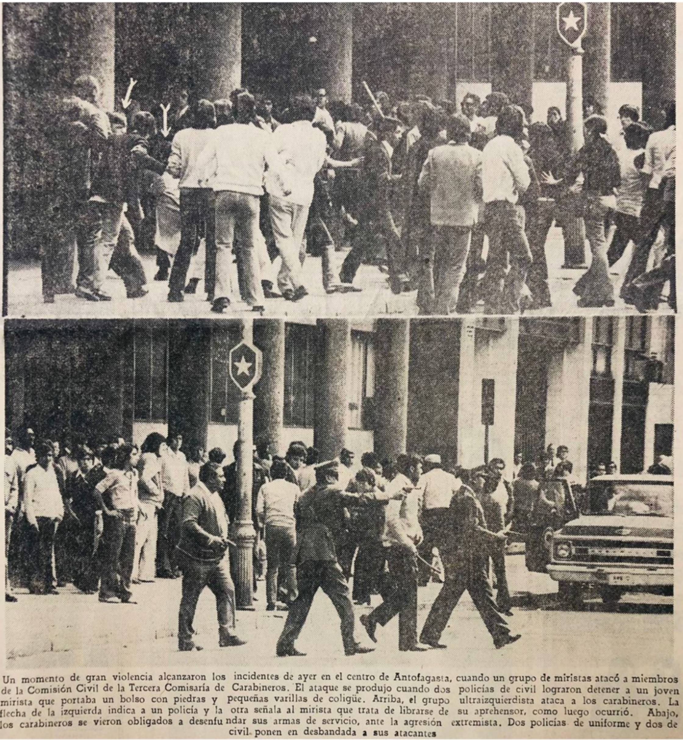 En Antofagasta, hasta el día 10 de septiembre funcionó en la Tercera Comisaría de Antofagasta la llamada Comisión Civil de Carabineros y la “Unidad de Radiopatrullas”, el primero, fue un organismo creado por la institución para enfrentar la delincuencia en las principales ciudades del país. Sus integrantes vestían de civil, y habían tenido pleitos callejeros en las calles de la ciudad con simpatizantes del gobierno de la Unidad Popular y del MIR, en el marco del creciente y polarizado clima político impuesto por sectores de la pequeña y mediana burguesía local durante los últimos meses de 1972, y en el transcurso de 1973. El diario El Mercurio de Antofagasta, en agosto de 1973 publicó imágenes fuera de la intendencia cuando integrantes de la Comisión Civil desenfundan sus armas para amenazar a jóvenes manifestantes.