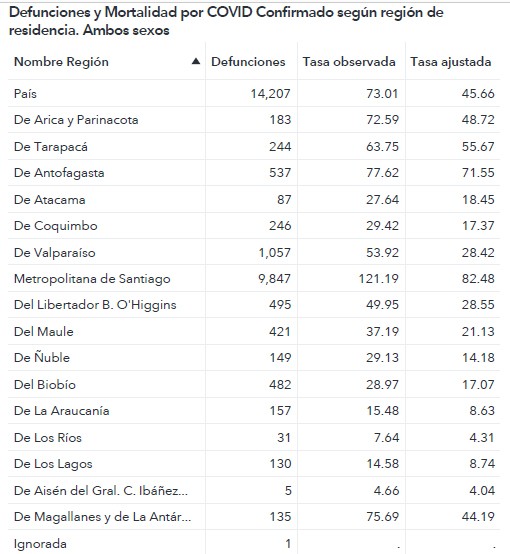 La cantidad muertes considerando casos confirmados alcanzó las 14.207 personas. La región del Biobío registró 482 muertes confirmadas de COVID-19