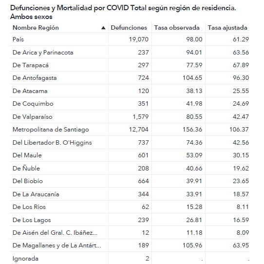 La cifra total de personas fallecidas considerando casos confirmados y casos sospechosos alcanzó las 19.070 personas. En la región del Biobío el número de defunciones totales alcanzó las 664