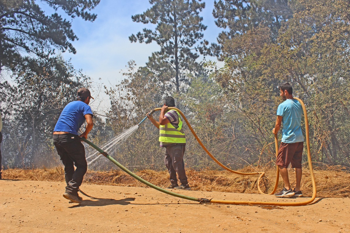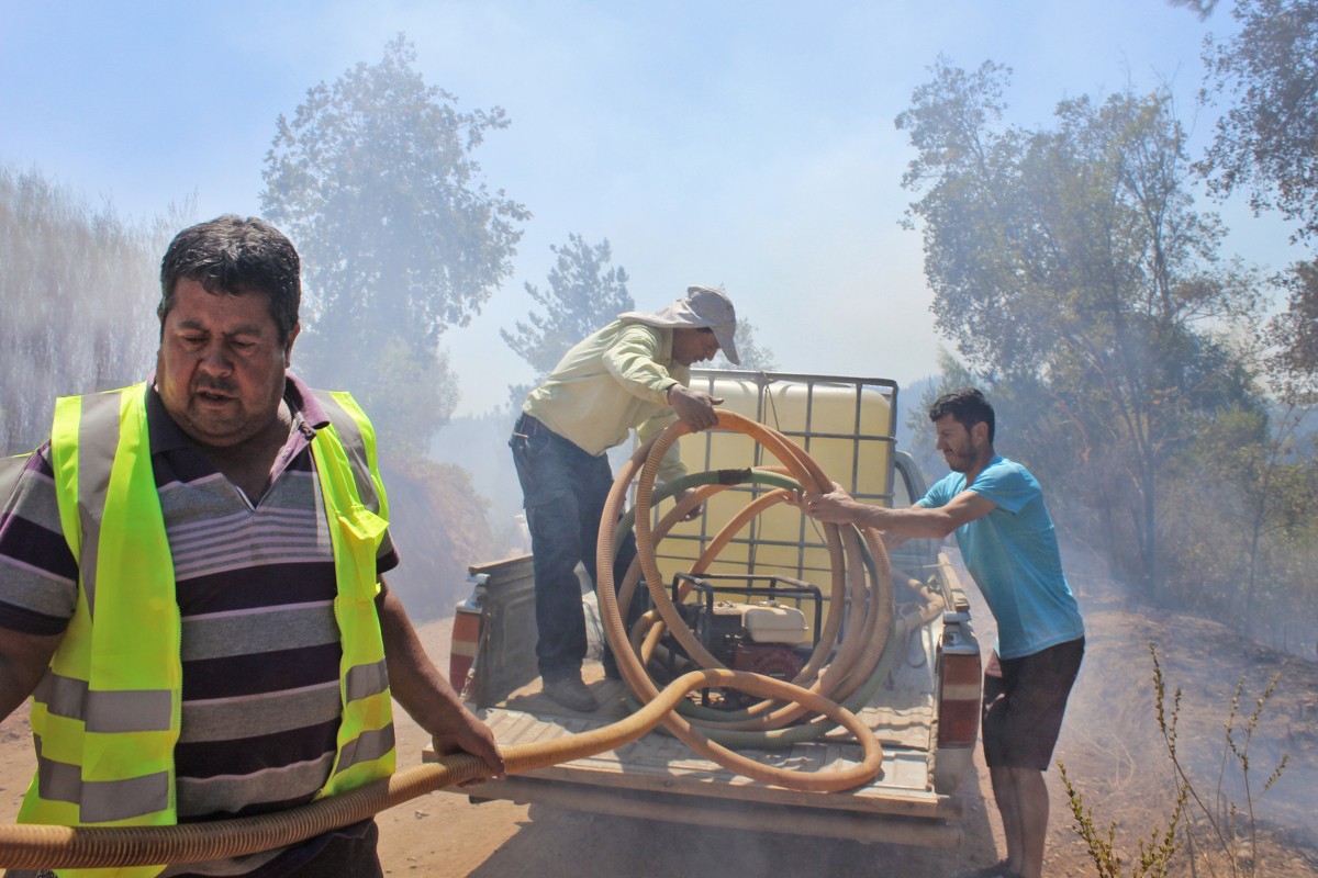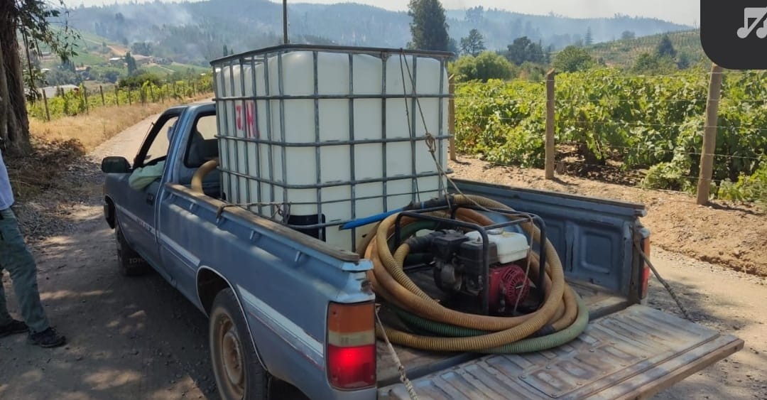 En conversación con Resumen, Juan Hinojosa Cabrera relata que "Esto lo estamos haciendo desde el jueves. Cada lugareño del sector tenemos este equipo, somos vitivinicultores, tenemos estos bins para guardar vino o chicha, tantos focos que hay en la región los bomberos a veces tardan en llegar, y estos motores los usamos para mostear el vino, y ahora los estamos usando para combatir la emergencia".