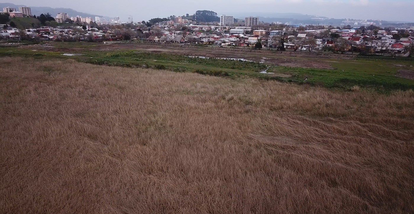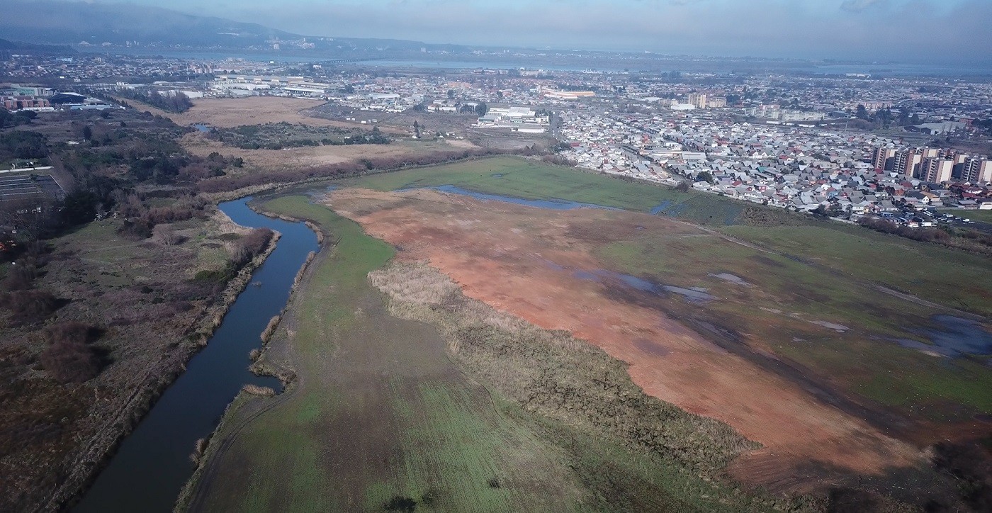Imagen muestra Humedal Paicaví cada vez más restringido por la expansión urbana, comuna de Concepción
