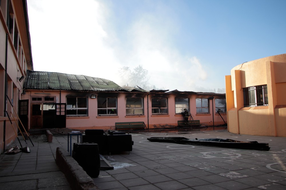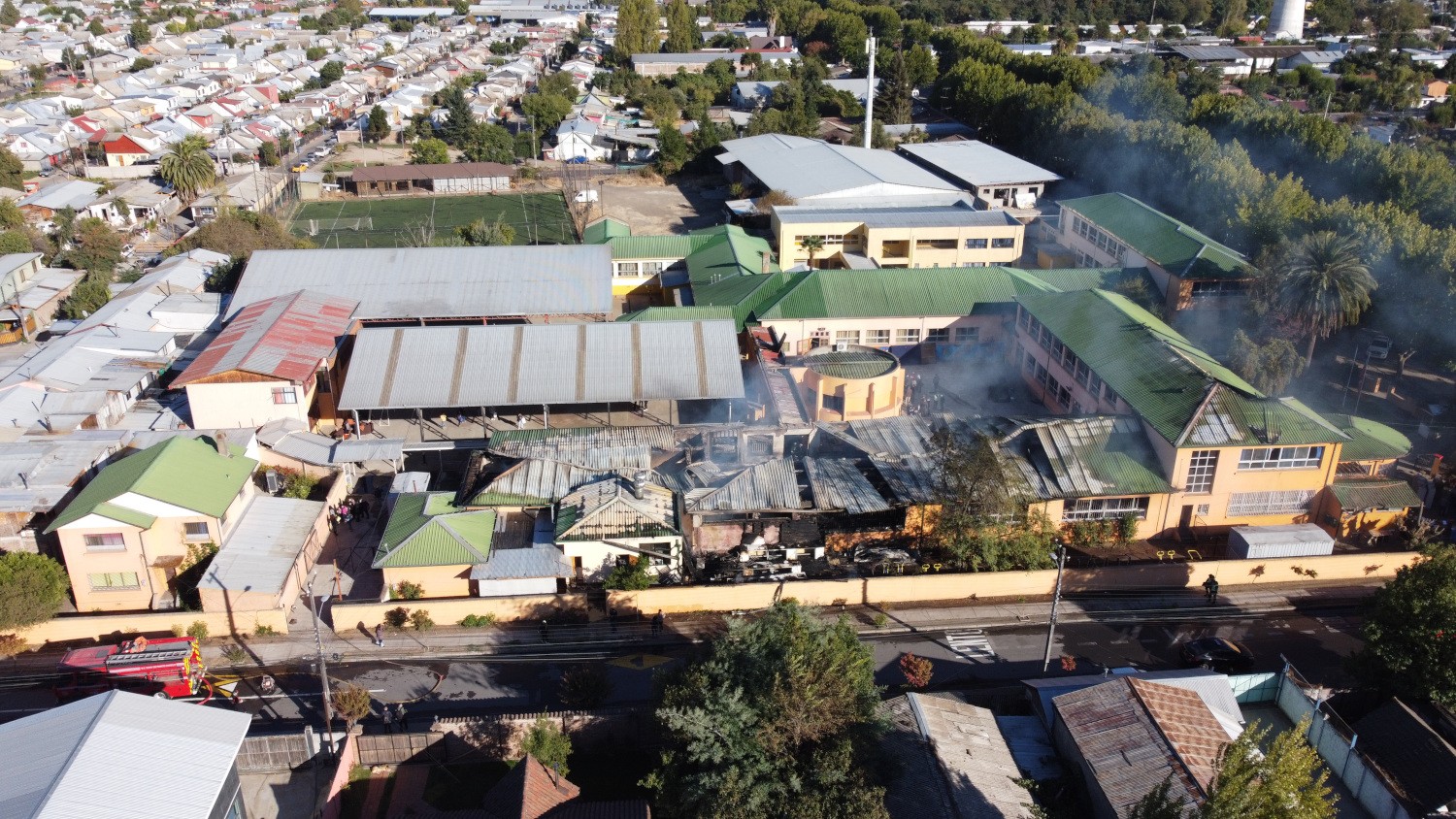 El comandante de Bomberos Cristian Novoa señaló que se quemó el 70% del colegio "nosotros al llegar se había quemado el 50%, nos preocupamos de la propagación del colegio colindante y de una casa de la persona que cuida, el nochero".