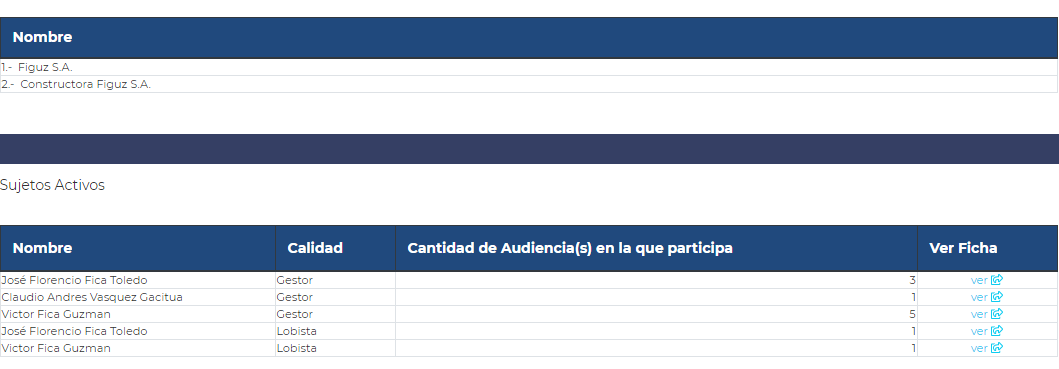 De igual forma, la constructora cuenta con antecedentes en materia de Lobby. En estos, se presenta a José Fica como gestor y lobista de proyectos, al igual que a Victor Fica Guzmán, su hijo.