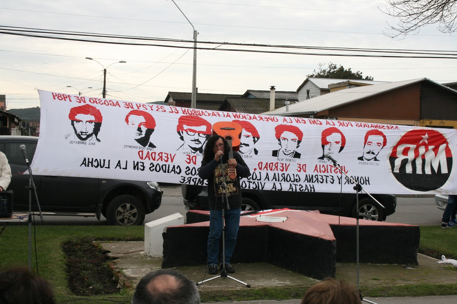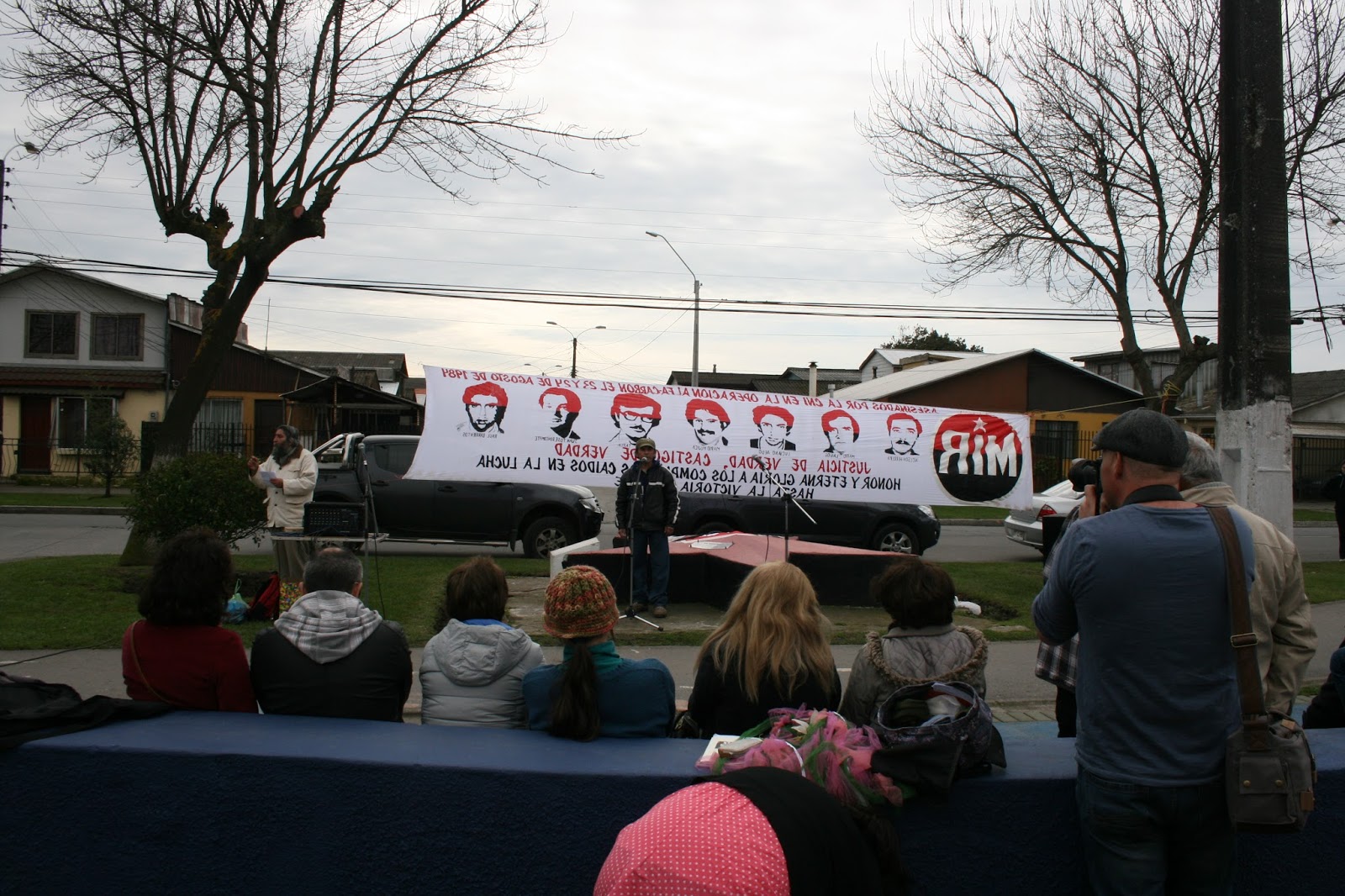 Durante la mañana de este domingo familiares, amigos, compañeros de los caídos, así como vecinos del sector Lorenzo Arenas, se dieron cita en el monolito que recuerda a los 7 militantes del Movimiento de Izquierda Revolucionaria (MIR) ejecutados por la CNI el 23 y 24 de agosto de 1984 en las ciudades de Concepción, Los Ángeles y Valdivia.