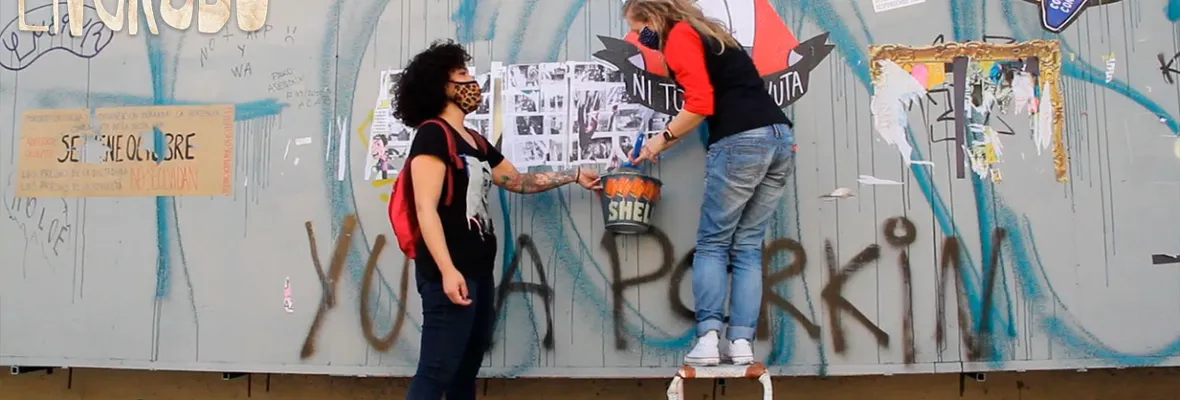 En este contexto "Daniela y Rodrigo, compañeros de la carrera en cine documental, nos fuimos encontrando en la calle cámara en mano. Luego de varias conversaciones comprendimos que era necesario hacer algo, coincidiendo en el aprecio hacia la gráfica y la admiración hacia esta tremenda fuerza creadora y colectiva, decidimos desarrollar nuestra tesis de grado con estos registros". En la misma línea, el equipo indica que "creció tanto el proyecto que invitamos a Cindy al equipo, quien nos fue asesorando a distancia durante la cuarentena, para luego integrarse como una realizadora más. Primero en la dirección de arte, Cindy comenzó a participar en cámara, diseño y producción, ya que decidimos que este proyecto necesitaba ser creado de una forma colaborativa. Los tres asumimos todos los roles, fue un trabajo muy horizontal, al que le dedicamos más de dos años y medio de esfuerzo, dedicación y autogestión".