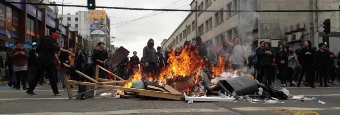 En Concepción a un mitin convocado para las 13:00 hrs. siguió una marcha por Avenida O'Higgins y posteriores enfrentamientos con FF.EE. de Carabineros que se extendieron por calles cercanas del centro.