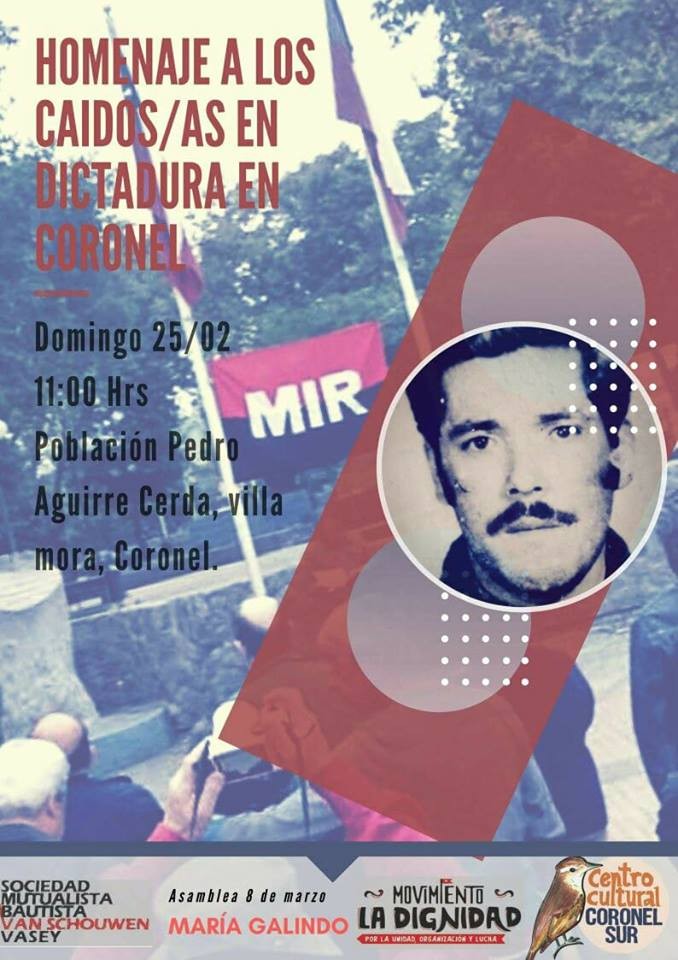 [resumen.cl] A las 11:00 horas, en la Avenida Central de la Población Pedro Aguirre Cerda, del Sector Villa Mora en Coronel se conmemorara a los resistentes de dicha población caídos en a lucha antidictatorial.