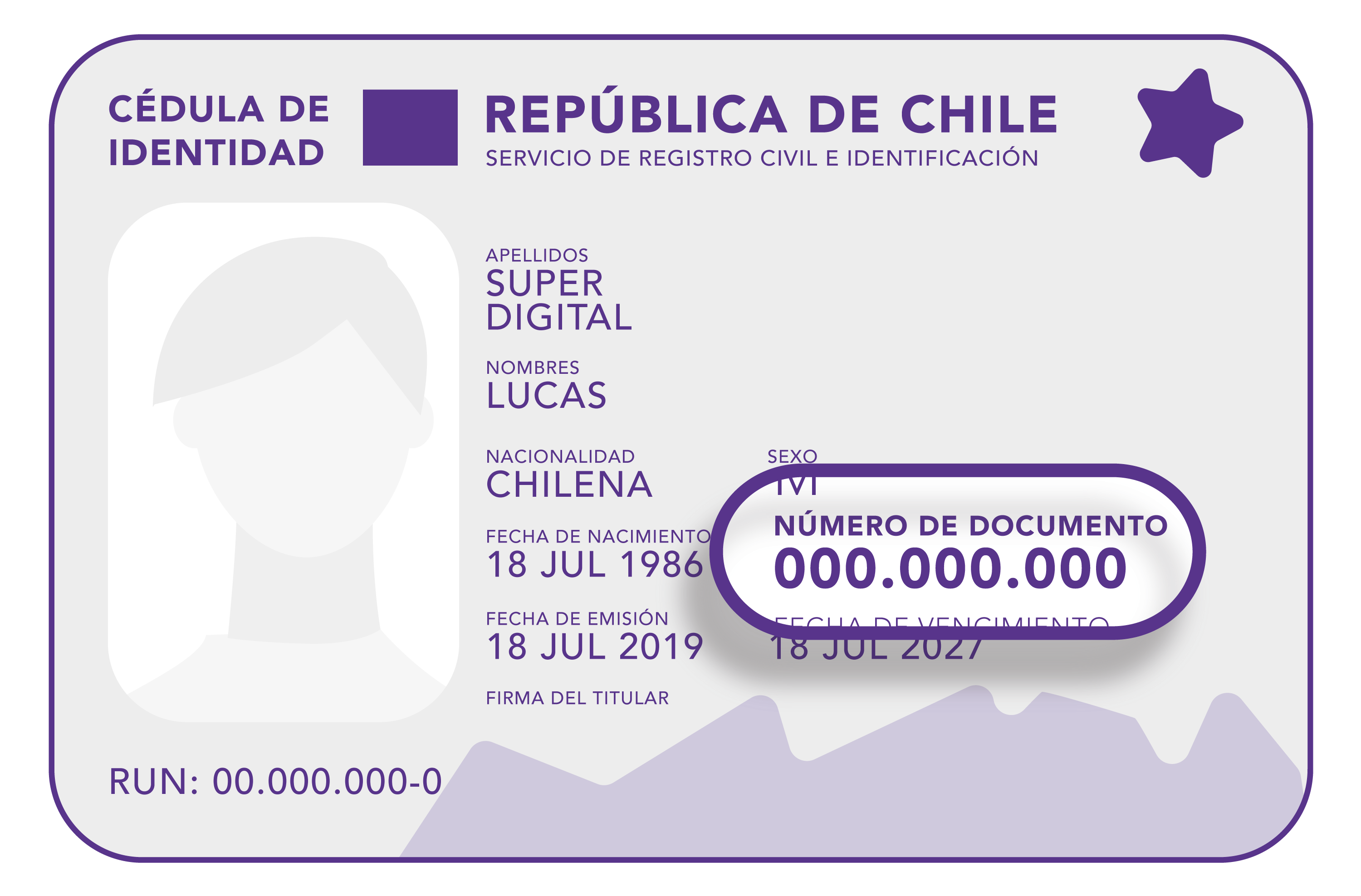 Ubicación del n° de documento en el carnet nuevo | Fuente: ayuda.superdigital.cl