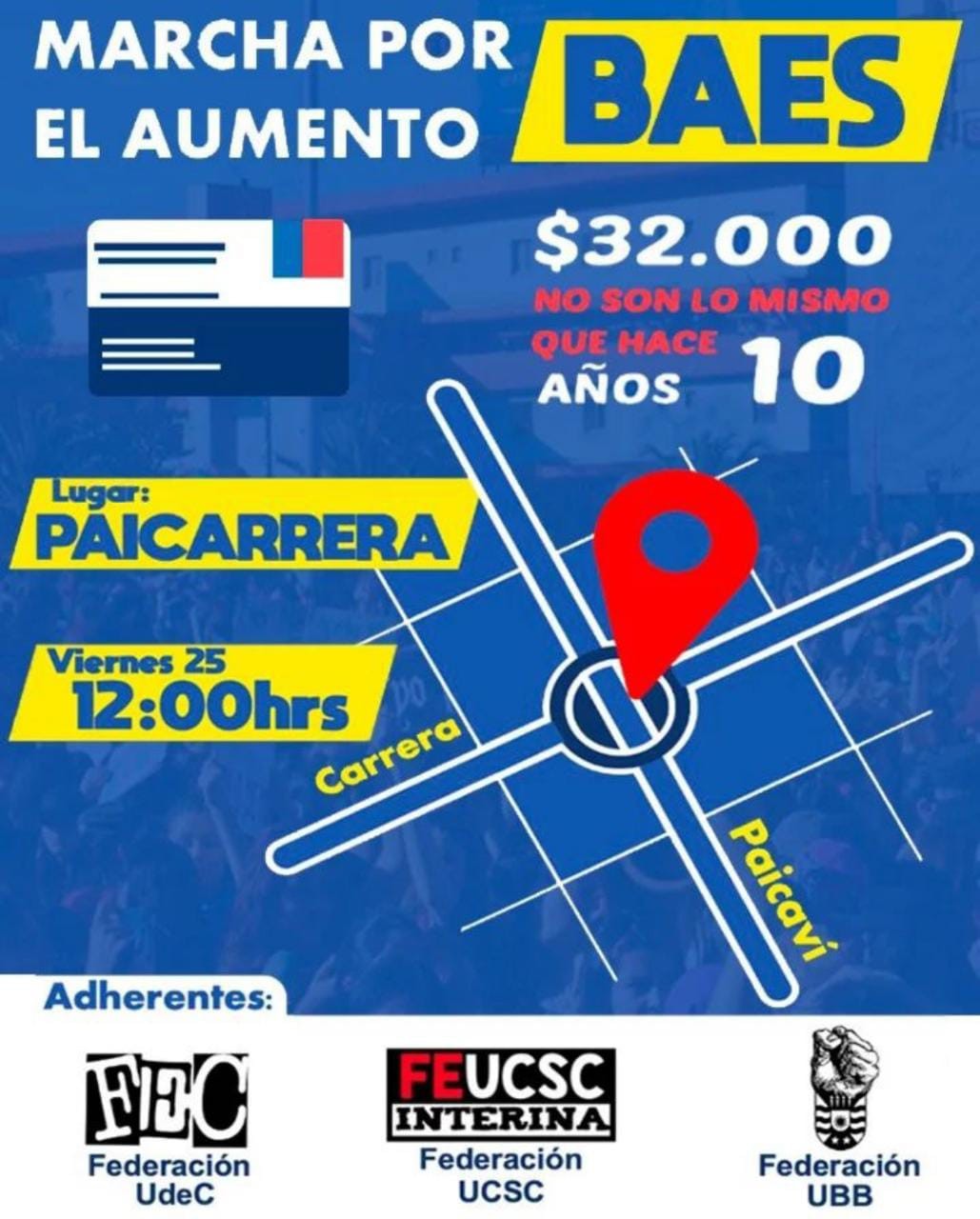 [resumen.cl] Para este próximo viernes 25 de marzo a las 12:00 hrs, estudiantes de la UdeC, UCSC y UBB convocaron a una marcha para exigir el aumento del valor de la beca de alimentación para la educación superior (BAES).