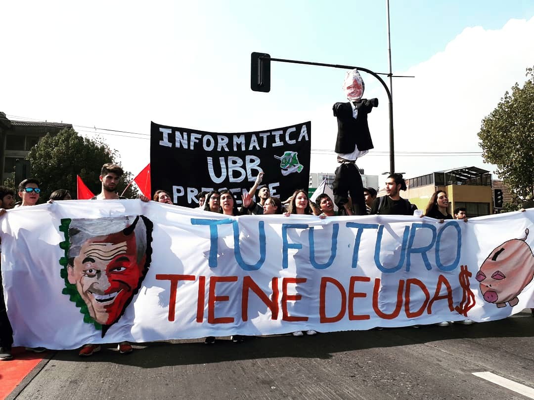 Estudiantes de la Universidad de Concepción se reunieron con universitarias y universitarios de la UCSC, la UBB y estudiantes de la educación secundaria en Paicaví con Carrera, desde donde marcharon hasta llegar a calle Rengo, volviendo por Avenida O’Higgins hasta la Plaza Independencia, donde se incineró un corpóreo del Presidente Piñera.