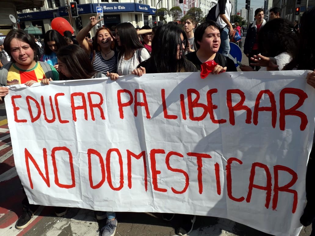 Una movilización que puso énfasis en la pérdida de la gratuidad de miles de estudiantes, el endeudamiento a lo que los ha conllevado, la represión política y policial a las y los estudiantes secundarios y las pésimas condiciones de infraestructura de los recintos municipales fue lo que se desarrolló durante la jornada.
