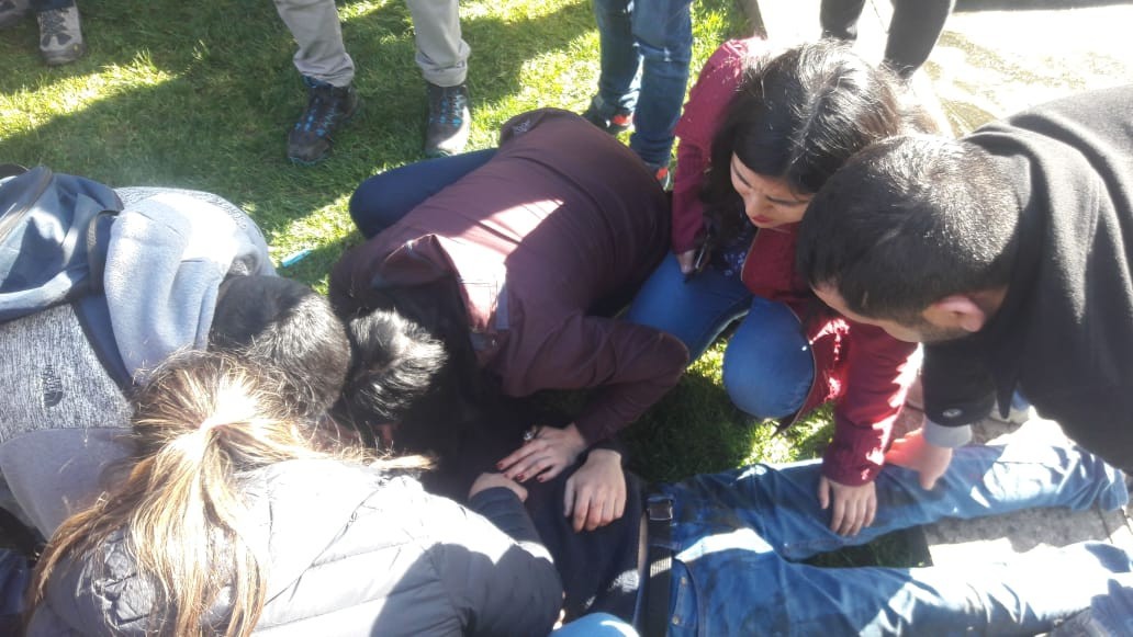 Cuando los manifestantes intentaron marchar por la ciudad, fueron duramente reprimidos, resultando un estudiante herido tras caer al suelo y azotar su cabeza contra el concreto. Hasta la edición de esta nota el estudiante aún no era atendido por especialistas, encontrándose semiconsciente y sangrando.