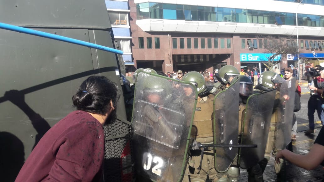 No alcanzaron a pisar con un pie la Avenida O’Higgins. La manifestación fue reprimida por Fuerzas Especiales de Carabineros apostadas en las cercanías de tribunales.