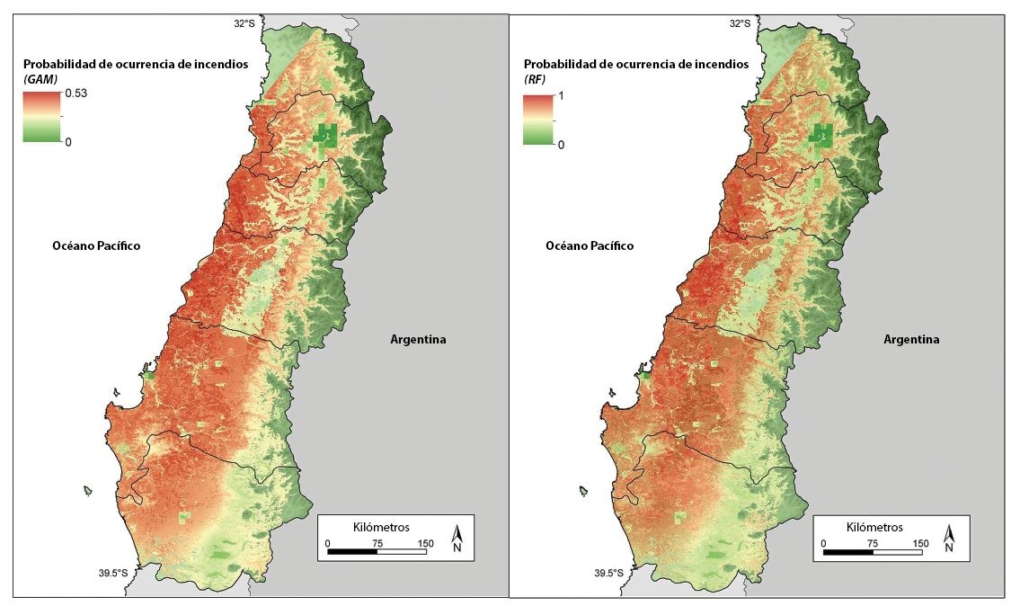 Para esto, se evaluaron datos satelitales con el Espectroradiómetro de Imágenes de Media Resolución MODIS de la NASA analizando zonas afectadas por incendios durante el periodo 2001-2017. Los investigadores primero caracterizaron el área quemada desde la colección de imágenes MODIS y la compararon con los registros de incendio de la Corporación Nacional Forestal (CONAF). El estudio uso tres modelos para evaluar las relaciones entre la ocurrencia de fuego y factores como el clima, combustible y factores humanos conocidos que influencian la actividad de incendios. También usaron los resultados para mapear la probabilidad de ocurrencia de fuego en la zona centro sur de Chile.
