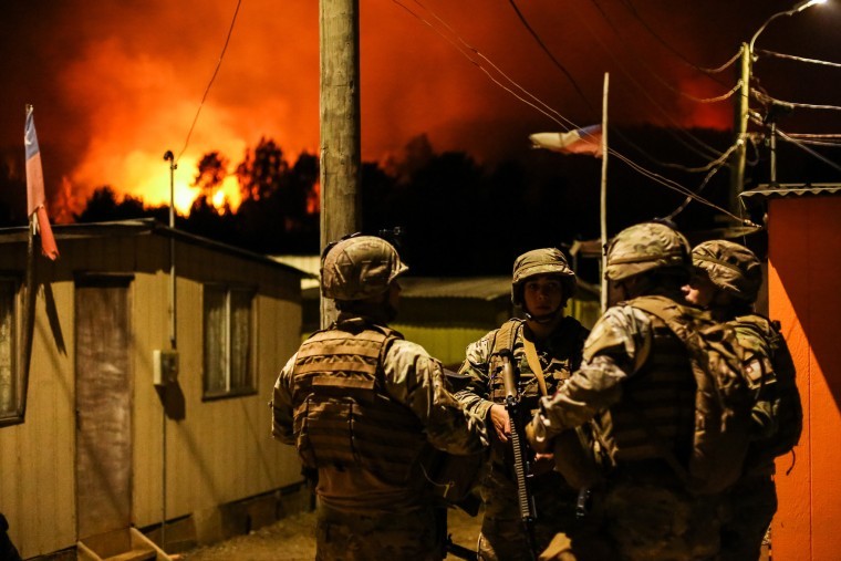 Tropas del ejército toman posiciones realizando controles a la población en zonas de catástrofe durante los megaincendios de enero de 2017. Foto: Flickr Esteban Ignacio