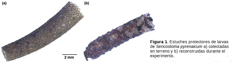 En este experimento, se utilizó un ambiente de microcosmos experimental, usando larvas tricópteras de la especie Sericostoma pyrenaicum, un organismo común en los sistemas de agua dulce del norte de España, que construye un estuche cilíndrico, curvado y en base a partículas minerales muy finas.