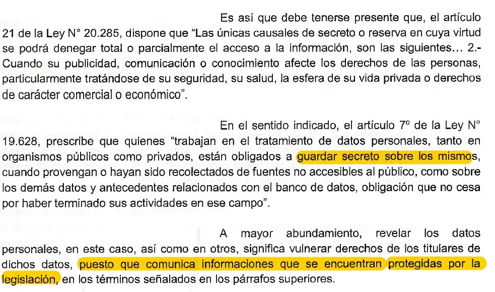 Sin embargo, cinco de estos no autorizaron la entrega de dicha información basándose en artículos referentes al resguardo de datos personales.