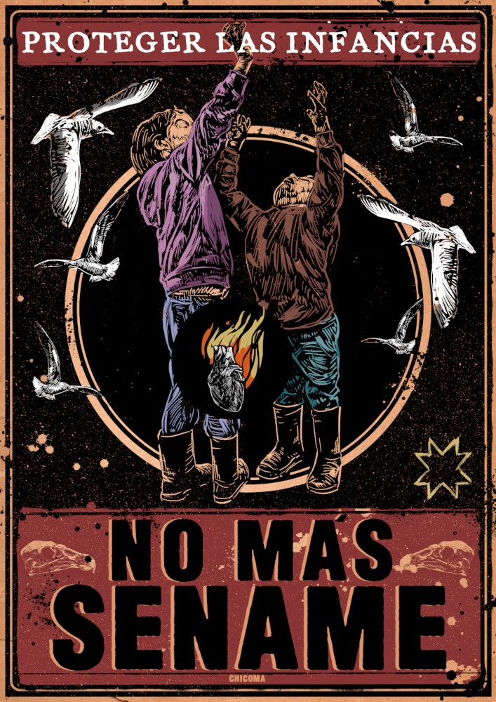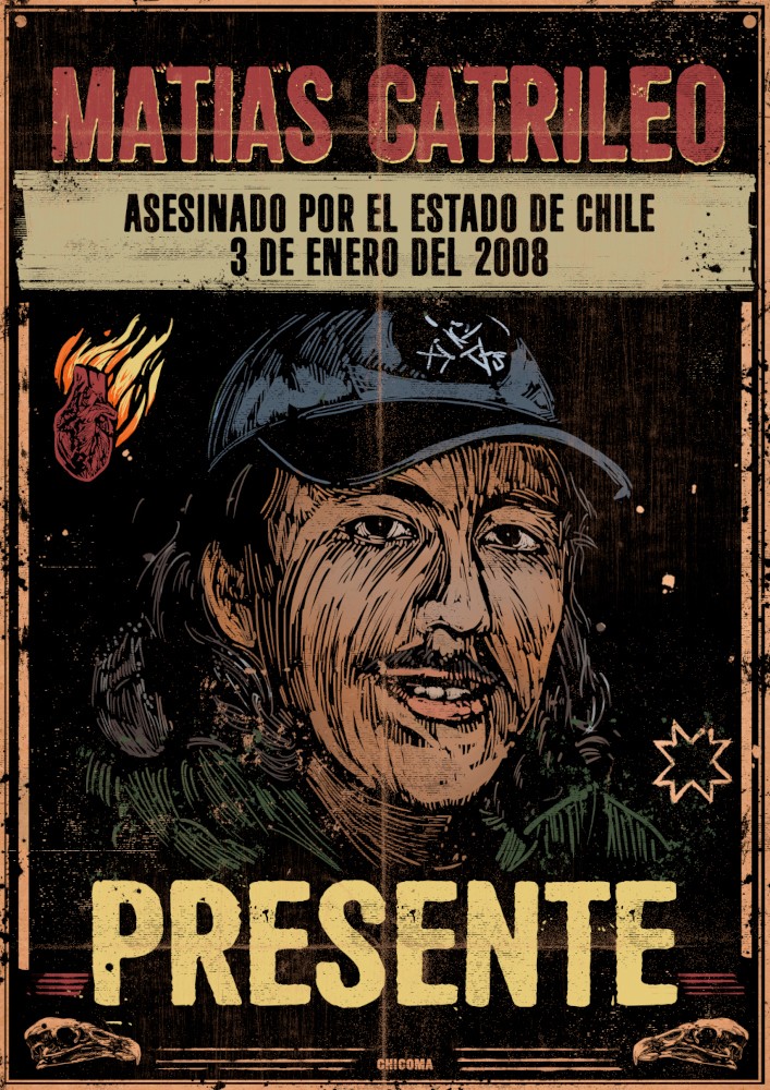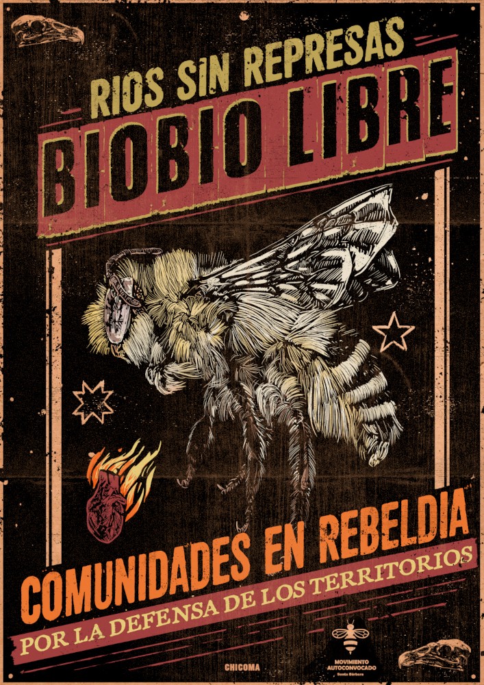 Personalmente me interesa crear un puente visual entre distintas organizaciones que conforman los movimientos sociales en los territorios, a partir de criterios gráficos concretos, que permitan una rápida identificación en quienes ven los trabajos. Para esto he echado mano de un estilo bastante tradicional, que toma mucho del grabado en madera o xilografía, técnica siempre muy presente en la historia de la gráfica de protesta en nuestro continente, llenándola de contenido acorde a los distintos territorios y luchas que así lo requieran. En este sentido la idea de colaboración entre y con distintas organizaciones, desde un punto de vista visual, permite potenciar la entrega de los mensajes, siendo esto en última instancia una importante manera de demostrar la integración de las luchas sociales en un gran movimiento, por supuesto, con todas las particularidades correspondientes.