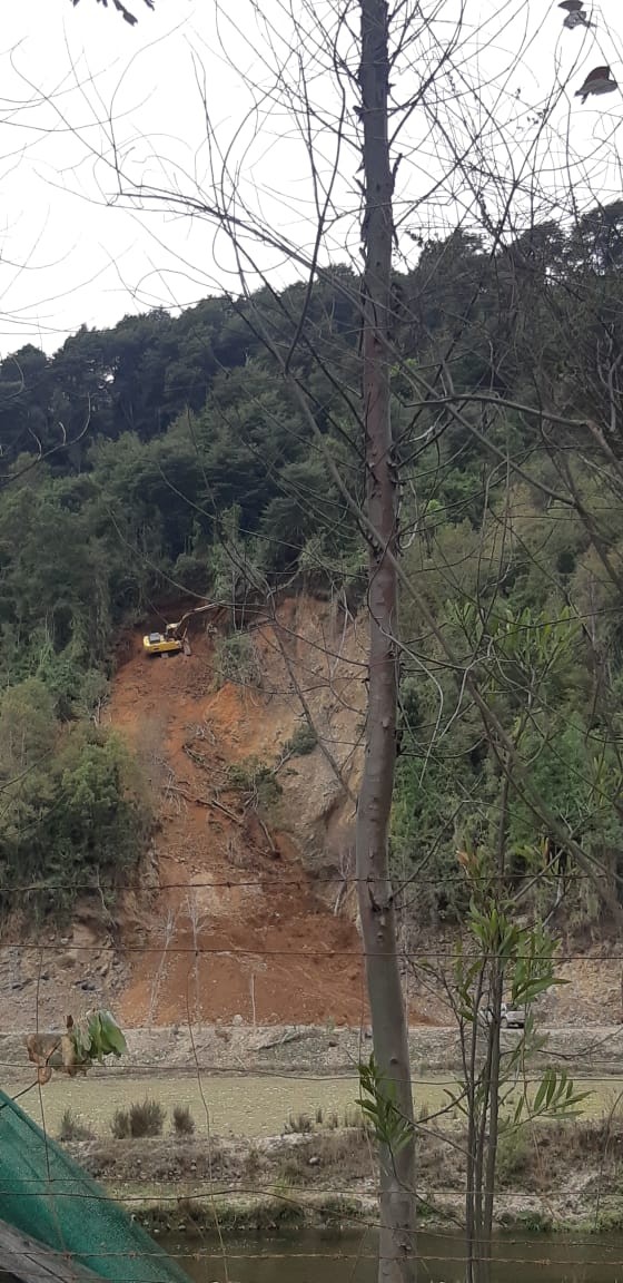 Instalaciones de la empresa Dream. Al fondo se ve una retroexcavadora donde baja una vertiente, la cual enturbia el agua aportando sedimento al río